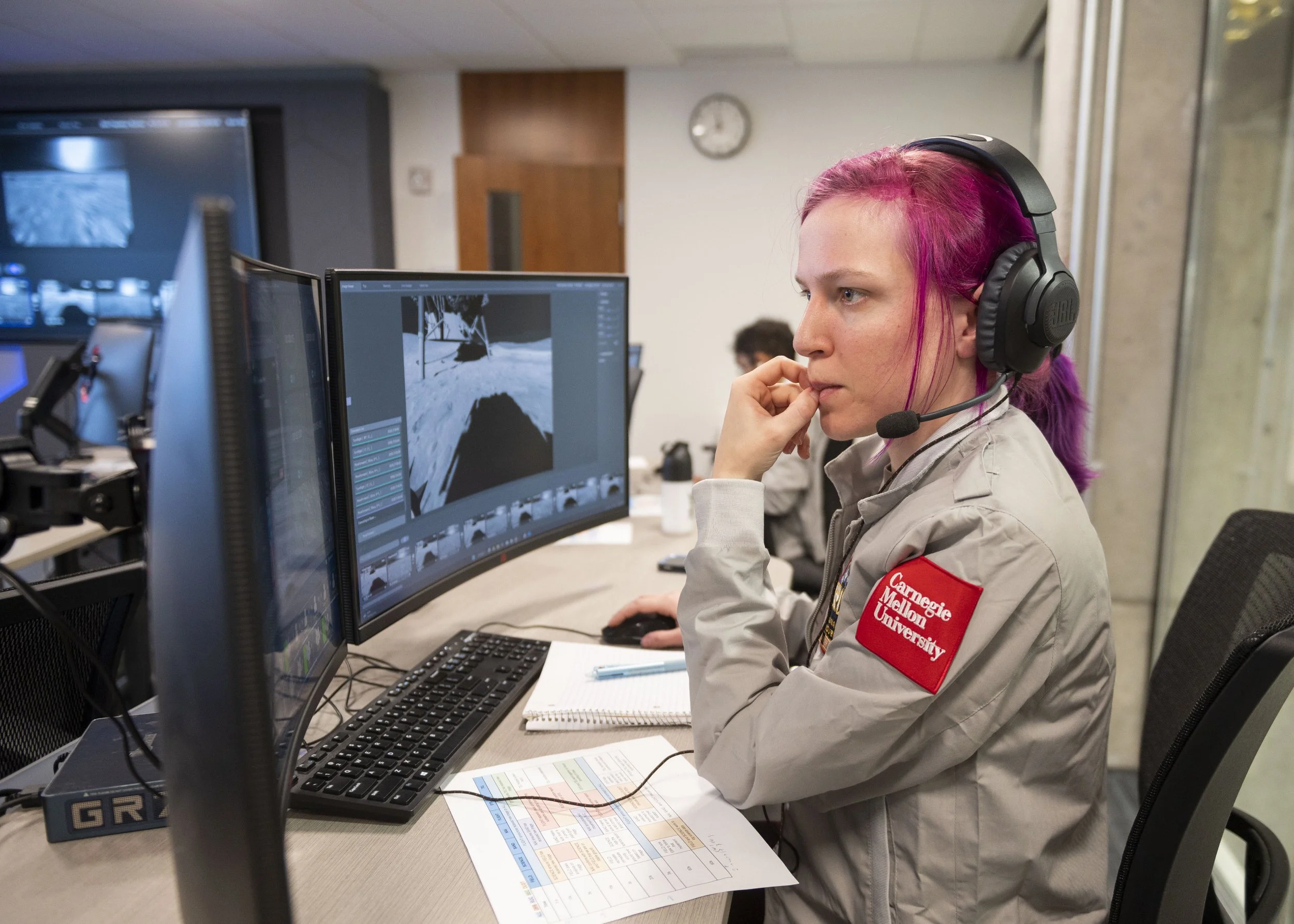 Not long ago, Gates 2109 looked like any other conference room on campus: full of furniture and white boards, ready for meetings, classes or whatever came its way. Now, it's Carnegie Mellon Mission Control, a new command hub in the Gates Center for Computer Science that provides state-of-the-art equipment for crews of the Iris and MoonRanger missions, and future space robotics initiatives.